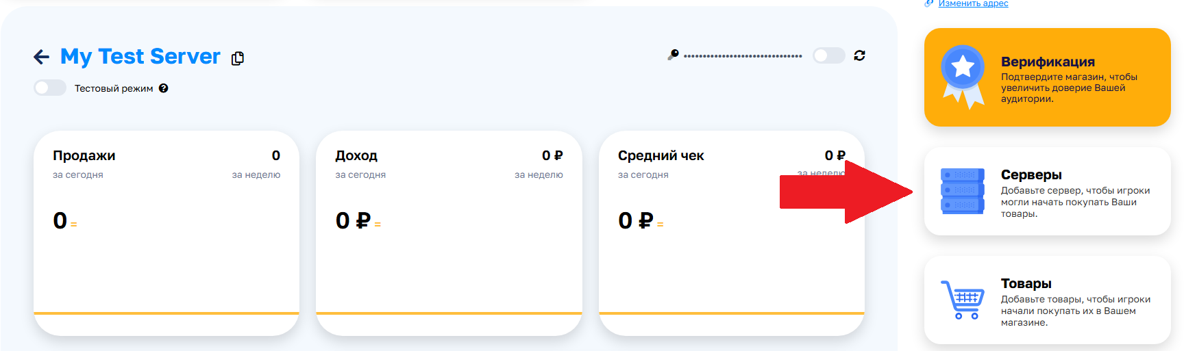 Заходим в личный кабинет EasyDonate, далее переходим в настройки магазина и жмём на кнопку «Серверы»