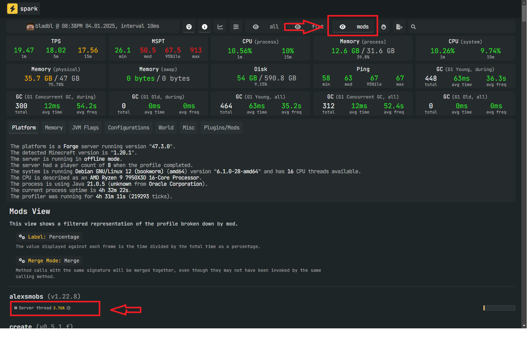 Шаг №6В браузере вы можете посмотреть какой мод именно загружает ваш сервер и вызывает задержки