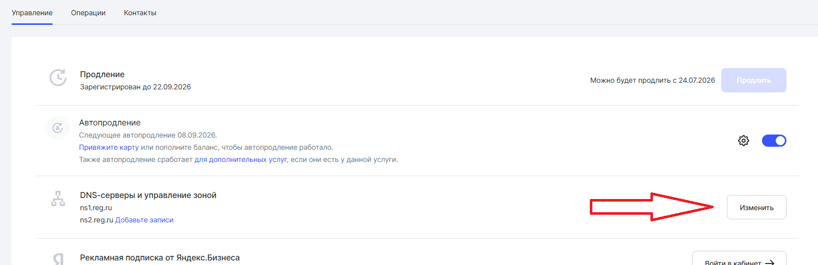 Далее ищем блок «DNS-серверы и управление зоной» и жмём изменить.