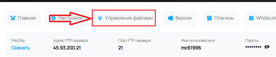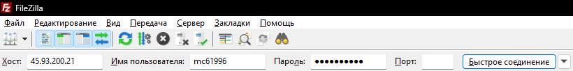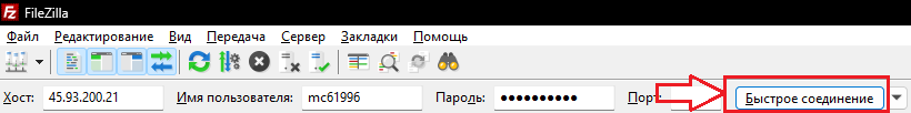 После открытия программы нам необходимо вписать данные от FTP в программу, данные находятся во вкладке