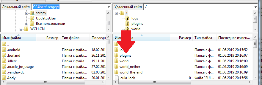 Шаг №2Подключаемся к FTP сервера и переносим плагин в папку plugins.