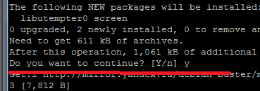 Во время установки установщик потребует подтверждение операции. Введите - Y и нажмите Enter.
